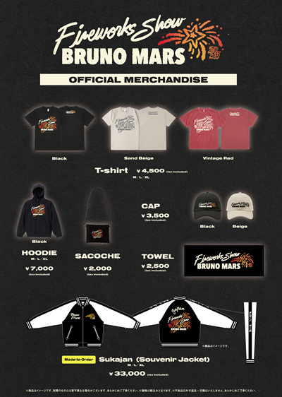 キービジュアルとロゴマークはブルーノ・マーズのチームが手掛けるなど、本人が積極的に関わっており、世界中でこの公演限定のグッズとなります。