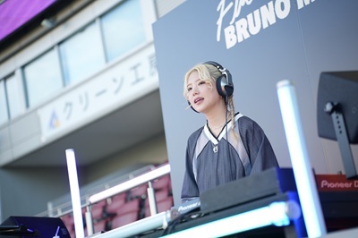 打ち上げまでの時間を楽しく過ごす、という意味で最も印象的だったのは、開場から花火の打ち上げまでの約3時間を盛り上げる日本を代表する人気DJ 4人によるDJタイム!15:30からオープニング・アクトとしてYonYonが登場。プレイ後に「選曲に悩みました」と打ち明けた彼女は、R&Bを中心としながらも、J-POPやK-POPを織り交ぜたブルーノ・ファンの気持ちを逆撫ですることのない選曲で来場者の気持ちを高揚させます。続くDJ KOMORIは王道のR&Bをメインでチョイス。ブルーノの「Finesse」を通常バージョンではなく“Live Studio Version”を選ぶなど、スタジアムだからこそ映えるプレイで初志貫徹!