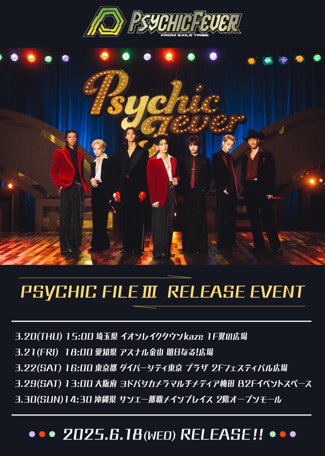 PSYCHIC FEVER 3rd EP「PSYCHIC FILE Ⅲ」発売記念リリースイベント ミニライブ&ハイタッチ会 開催決定!