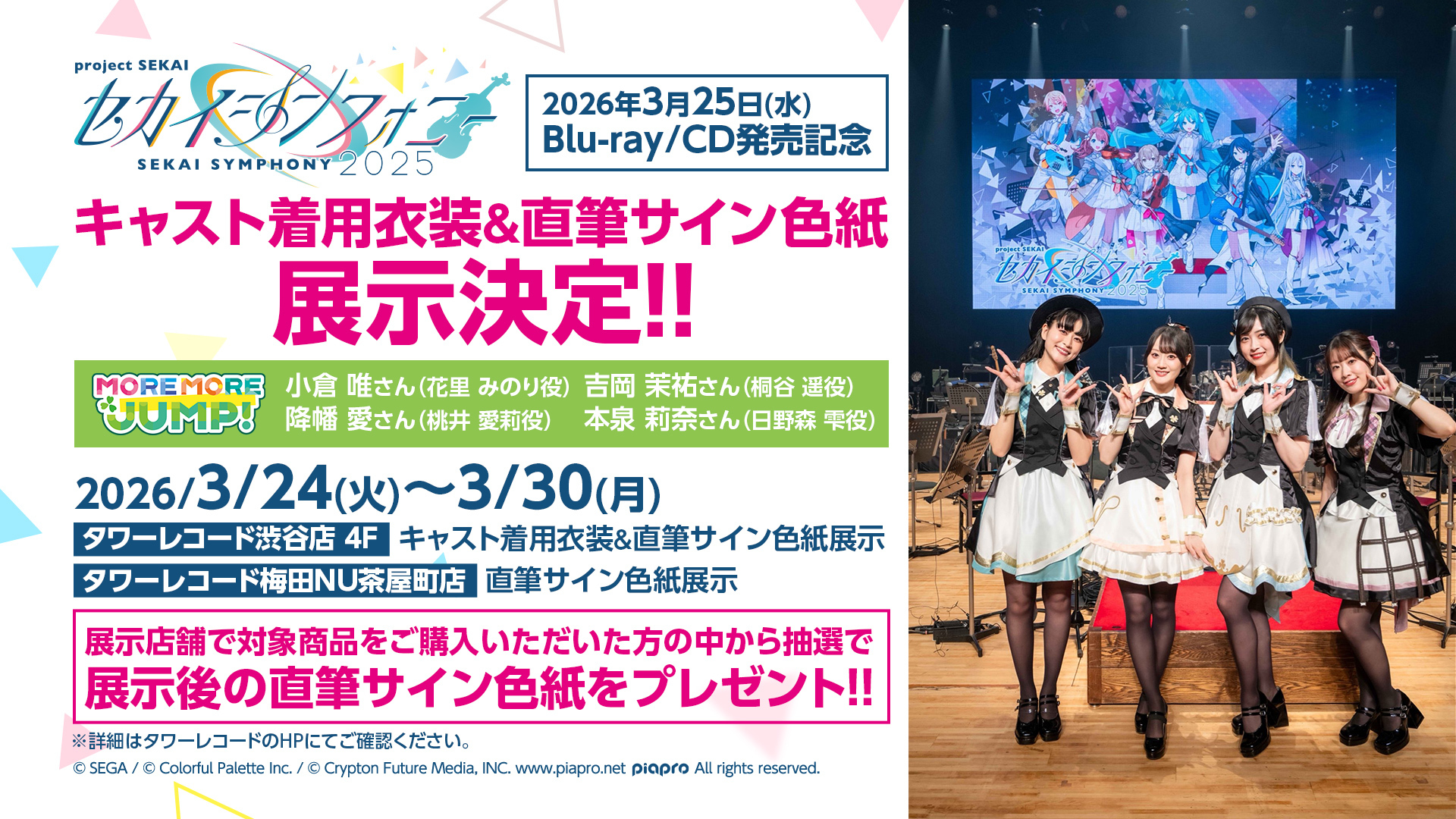 『セカイシンフォニー Sekai Symphony 2025 Live Blu-ray/CD』の発売を記念して、セカイシンフォニー2025にご出演された『MORE MORE JUMP!』キャスト着用衣装&直筆サイン色紙の展示が決定いたしました!
