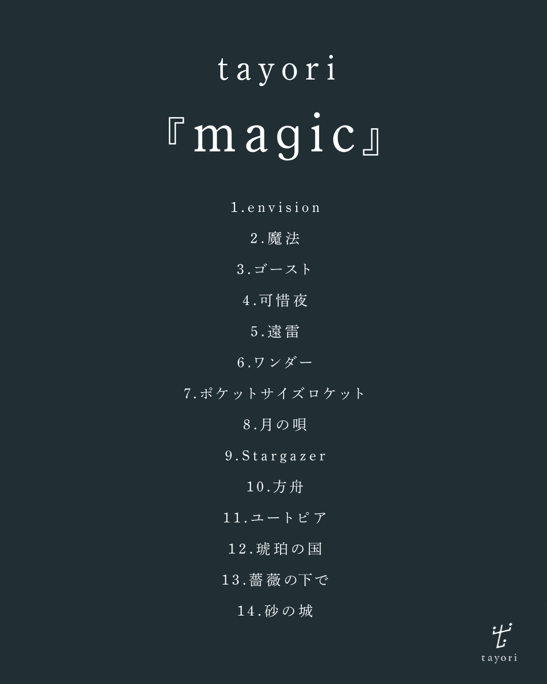 tayori、2nd AL『magic』初回生産限定盤アートワーク&トラックリスト解禁! 収録曲「ゴースト」が9/17(水)より先行配信スタート!