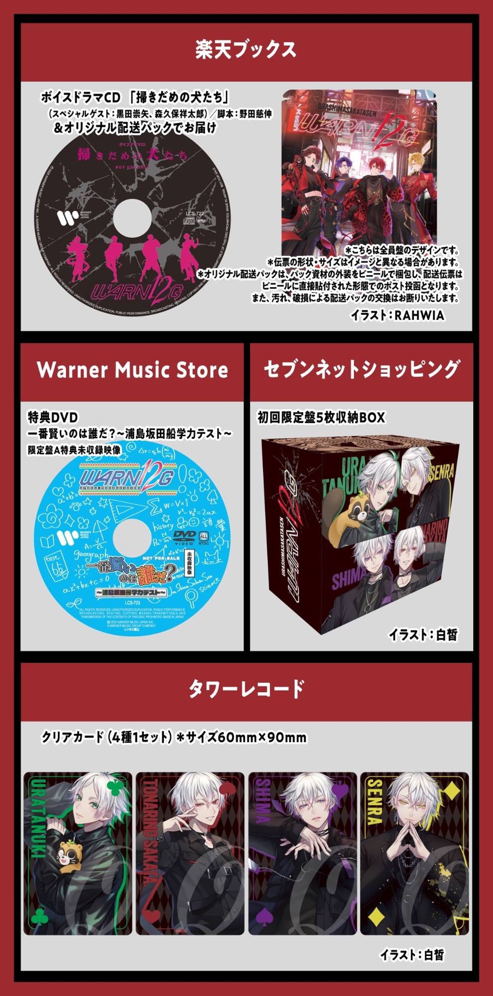 ALBUMCD+DVDWARN12G 初回限定盤A (浦島坂田船ver.)2025.06.25 発売 ¥3,080(税込)/WPZL-32211/2浦島坂田船WARN12G 初回限定盤A (浦島坂田船ver.)ALBUMCD+DVD2025.06.25 発売 ¥3,080(税込)/WPZL-32211/2BuyDownloadStreaming