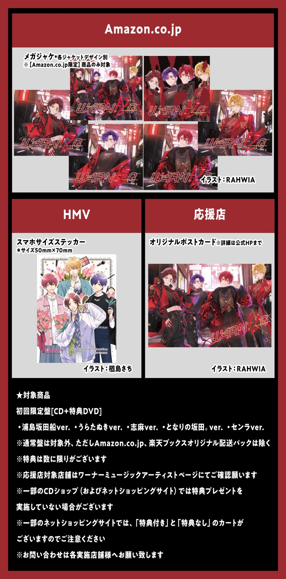 ALBUMCD+DVDWARN12G 初回限定盤C (志麻ver.)2025.06.25 発売 ¥3,080(税込)/WPZL-32215/6浦島坂田船WARN12G 初回限定盤C (志麻ver.)ALBUMCD+DVD2025.06.25 発売 ¥3,080(税込)/WPZL-32215/6BuyDownloadStreaming