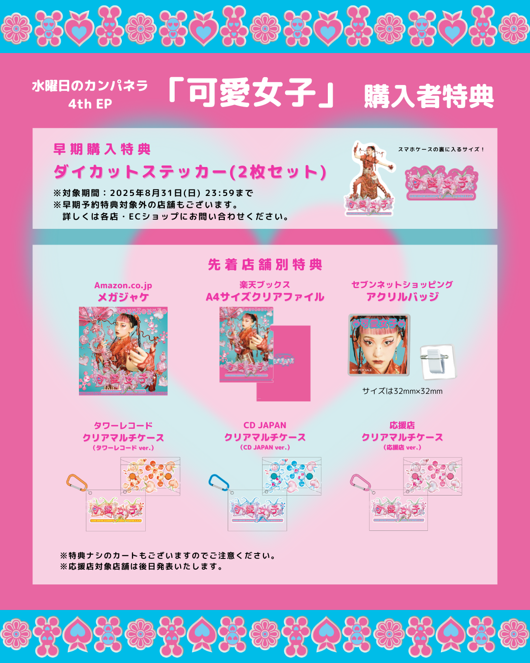 あわせて本日、『可愛女子』の収録曲順、早期購入特典、店舗別購入特典の絵柄も公開され、ファン必見の内容となっている。